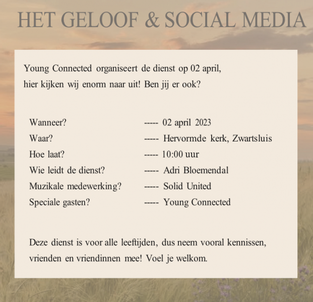 Uitnodiging dienst 2 april i.s.m. Young Connected