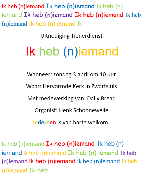Uitnodiging Tienerdienst 3 april