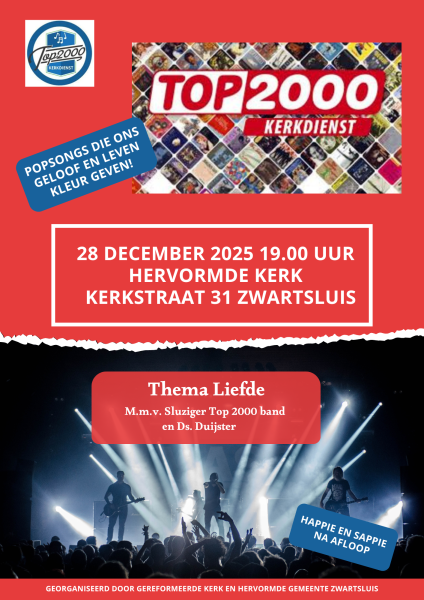 Samen met de jeugd, ds Duijster en een Sluziger TOP 2000-band hebben we de dienst voorbereidt. Het belooft een avond van inspiratie en verbinding te worden, waarin wij hopen dat Gods liefde mag klinken door alle woorden en liederen heen.