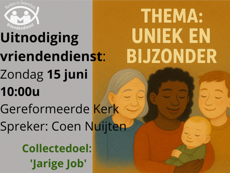 Allemaal van harte welkom op 15 juni om 10.00 uur in de Gereformeerde Kerk, Het Singel 16, Zwartsluis.